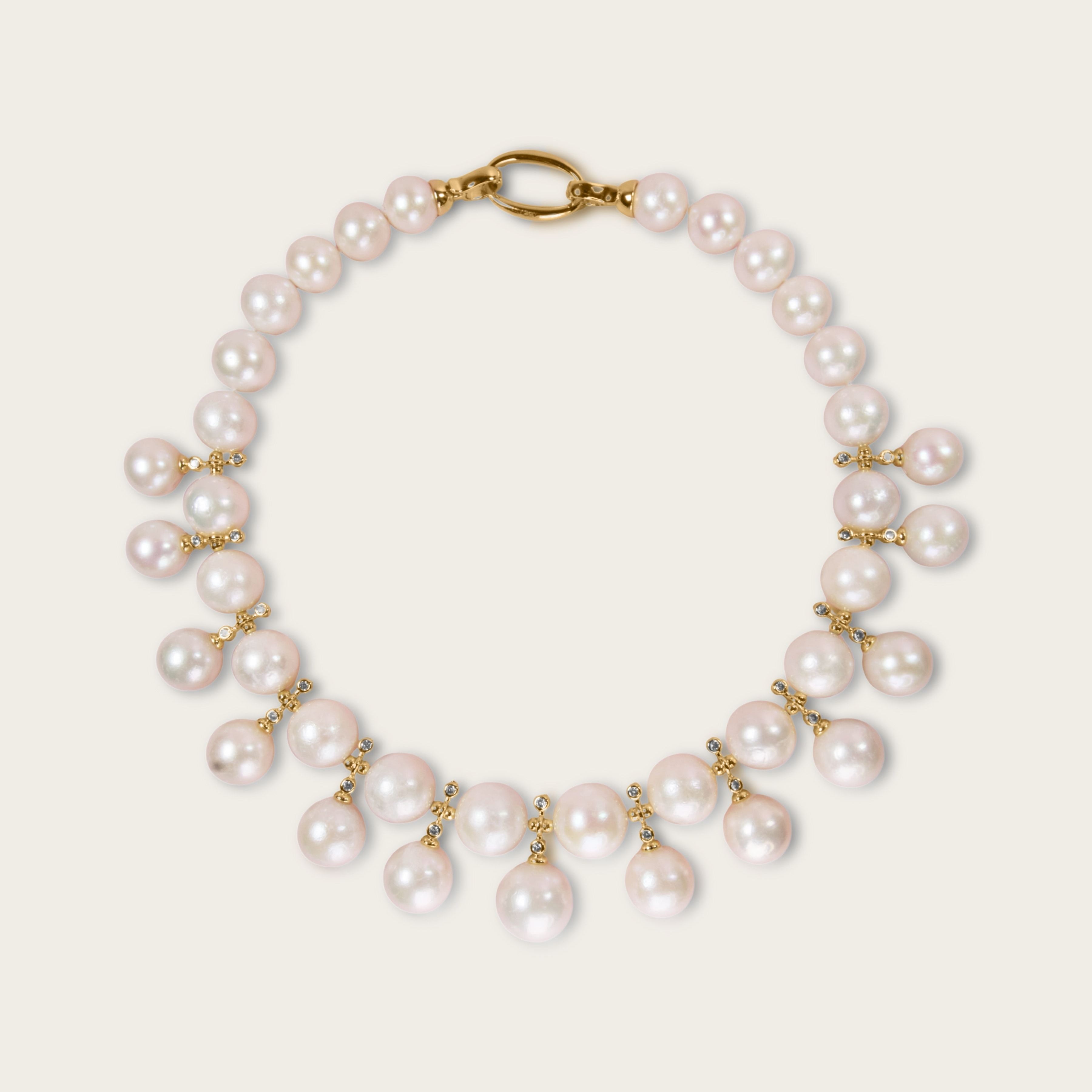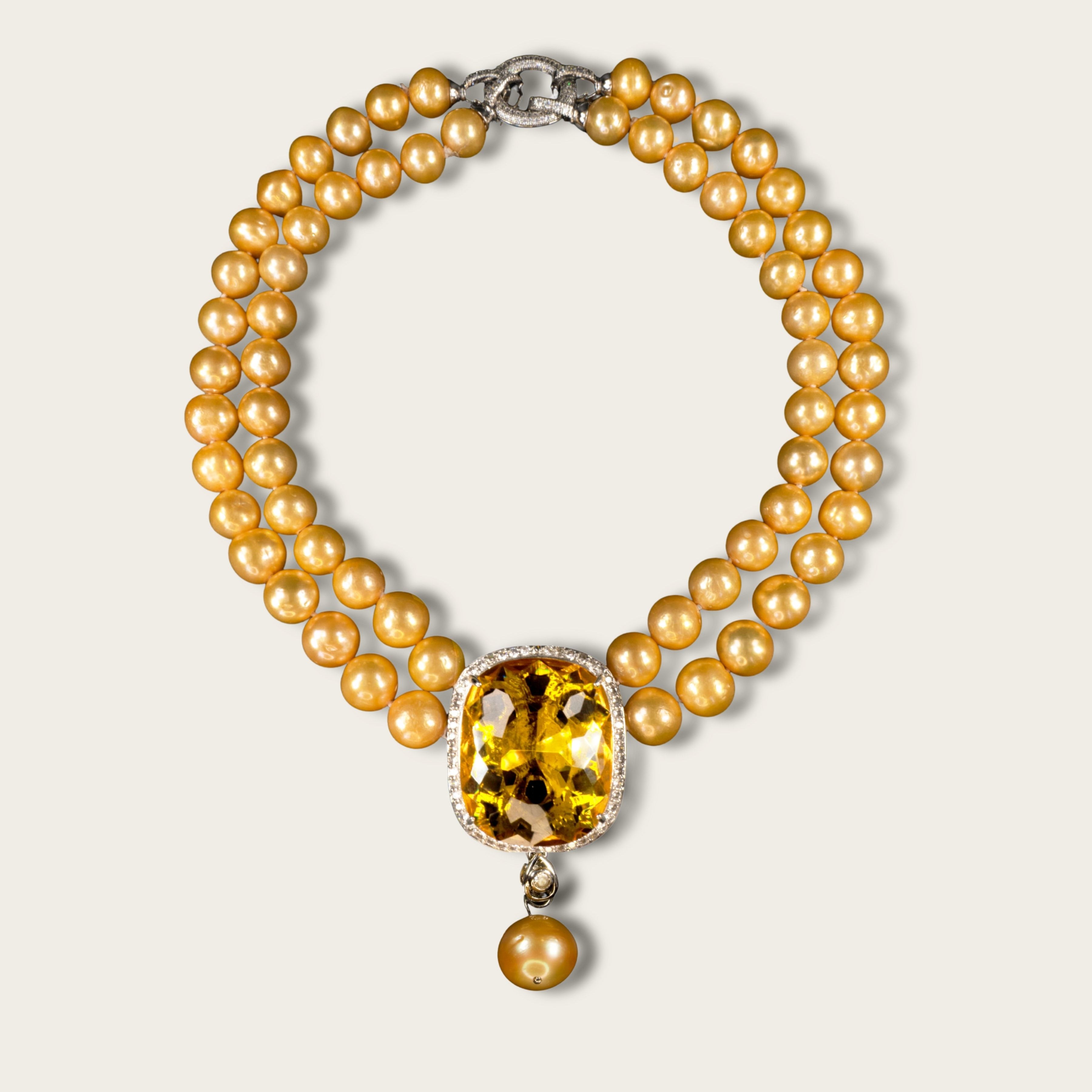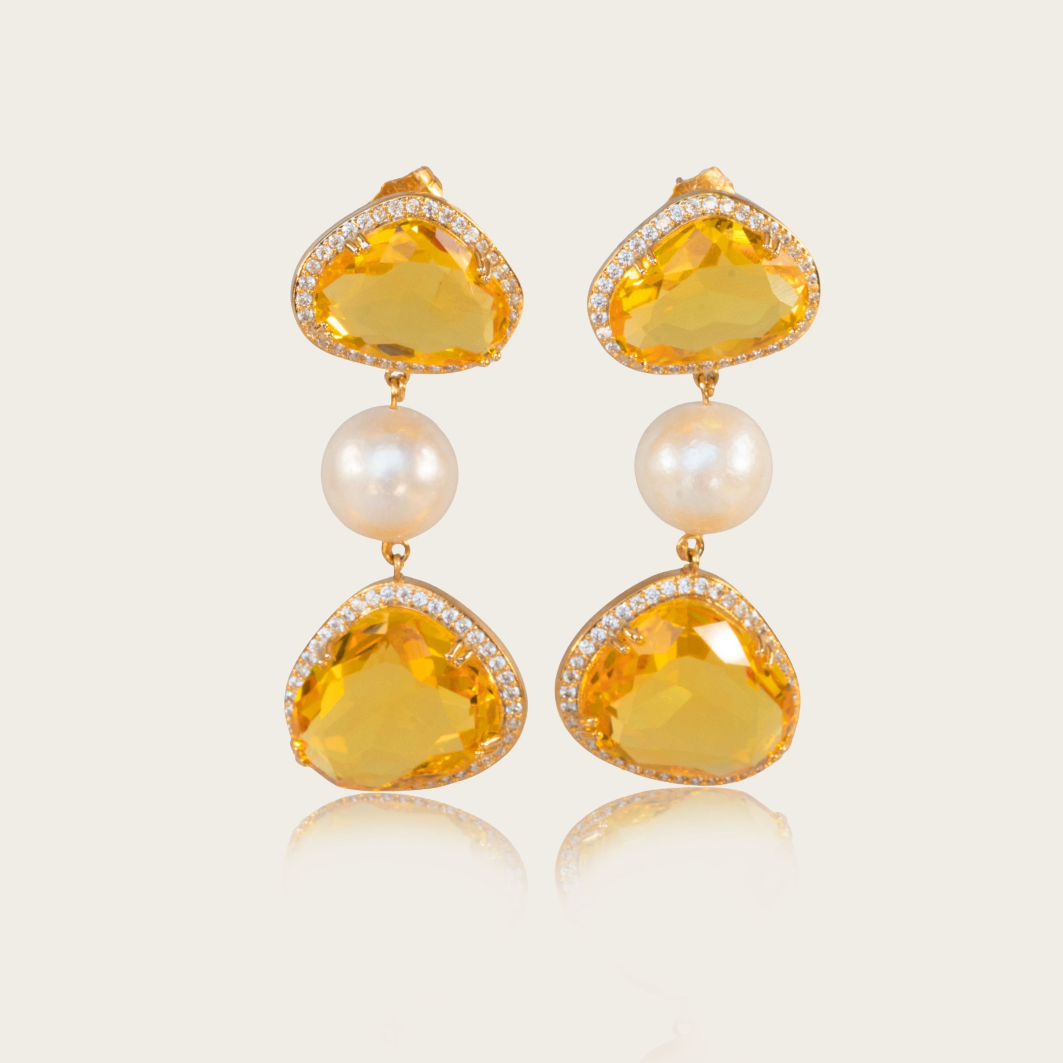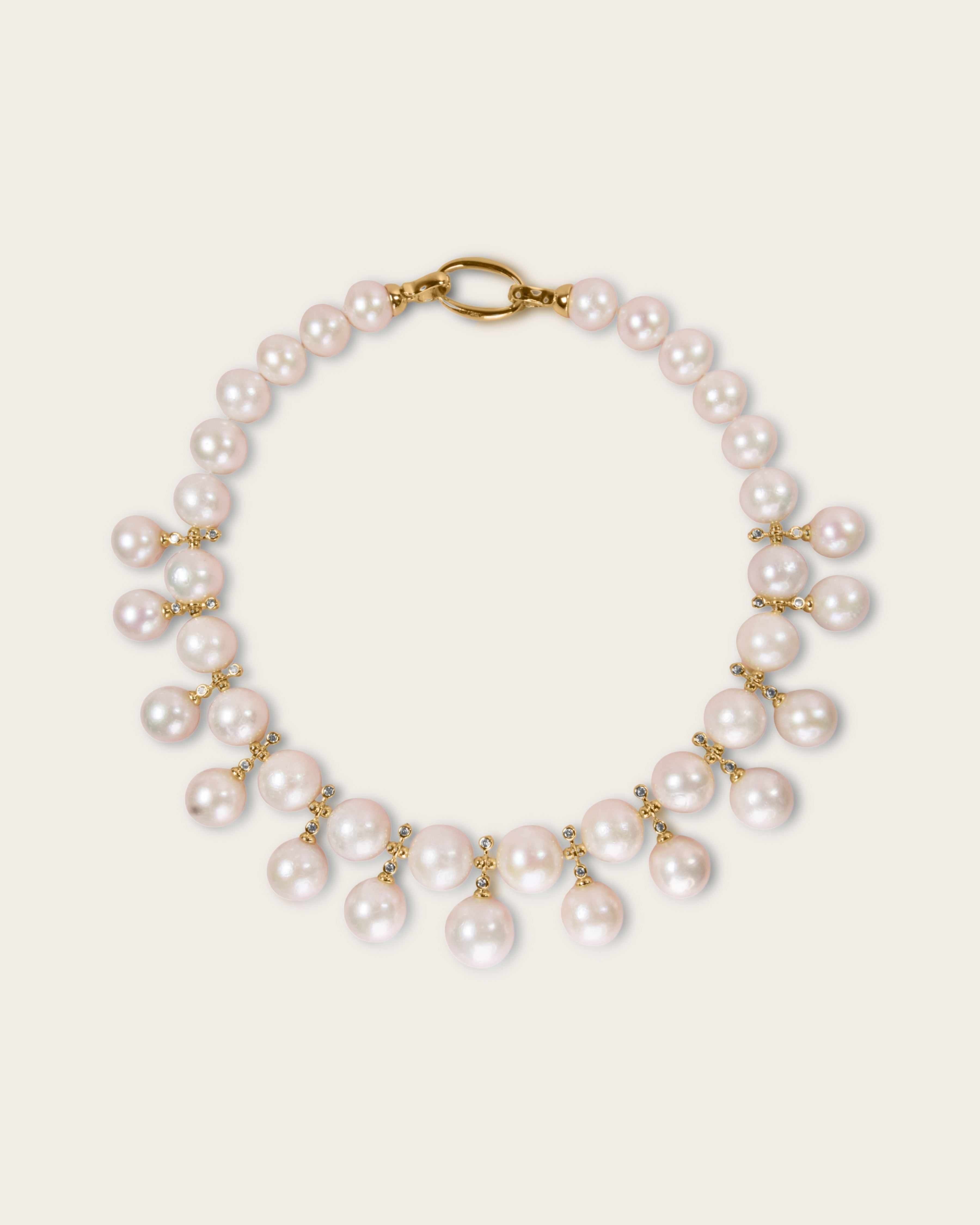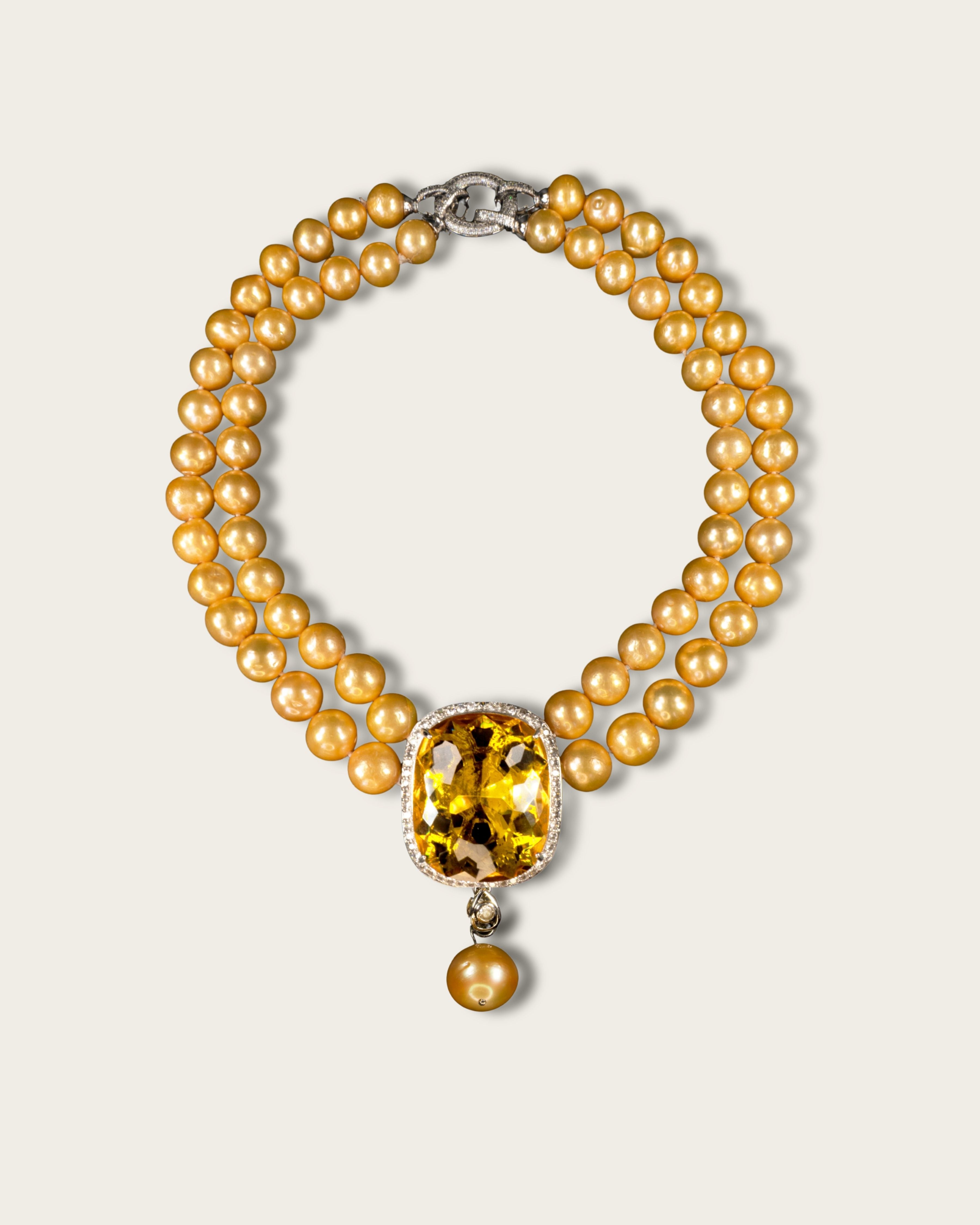 Nero Heart of Mare Necklace — a bold heart-shaped gemstone pendant available in multiple colorways, crowned with a luminous baroque pearl centerpiece and framed by gemstone chips.