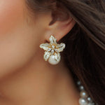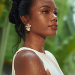 Fleur de Lune Earrings- Inspired by moonlit blooms over the ocean, the Fleur de Lune Earrings combine pavé-set petals with luminous freshwater drop pearls. Sculptural yet wearable, they exude elegance — ideal for evening glamour or refined day styling.