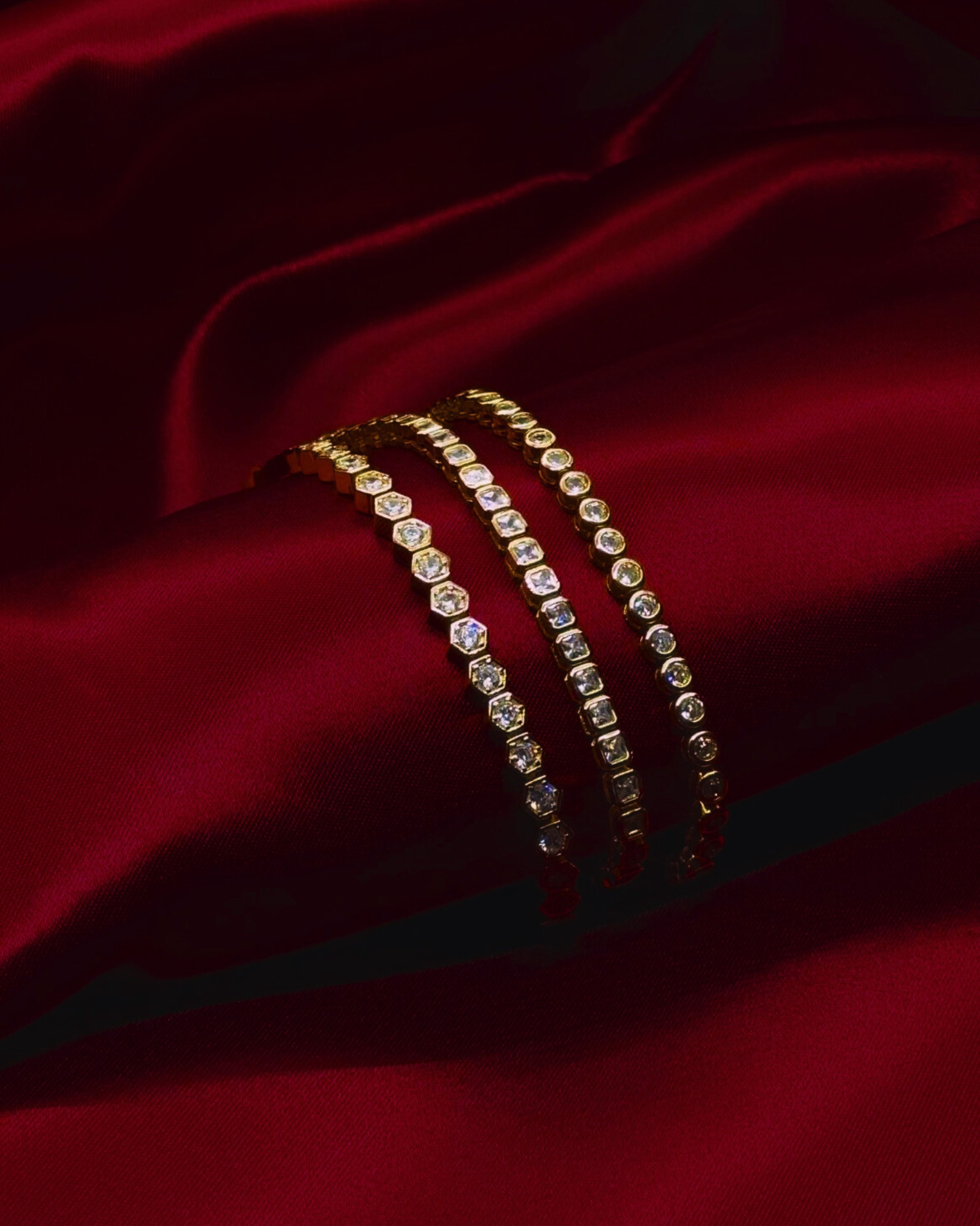 Meet the ultimate timeless set—our Classic Holiday Trio Bundle, featuring the Zara, Mira, and Andra Tennis Bracelets. Each bracelet brings its own iconic silhouette: Zara with sleek square stones, Mira with classic round brilliance, and Andra with a modern octagonal edge. Worn together or styled solo, this trio adds effortless elegance to any look, from everyday wear to holiday nights.