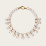 Celestine Double Strand Necklace — an elevated design featuring round freshwater pearls and shimmering Swarovski crystal accents, finished in 18K hard gold-plated copper. A modern heirloom that blends timeless pearl elegance with contemporary statement style. Designed in Las Vegas and handcrafted with intention by Filipino artisans using responsibly sourced raw materials from Asia.