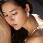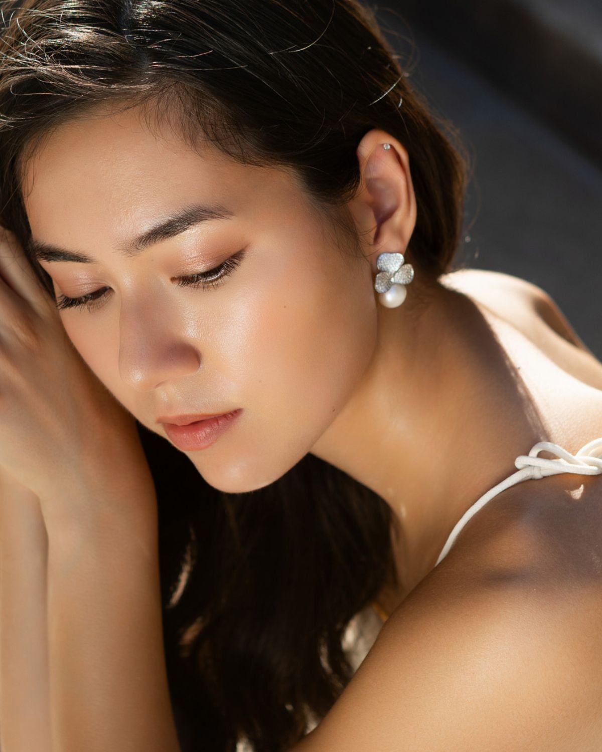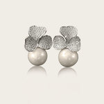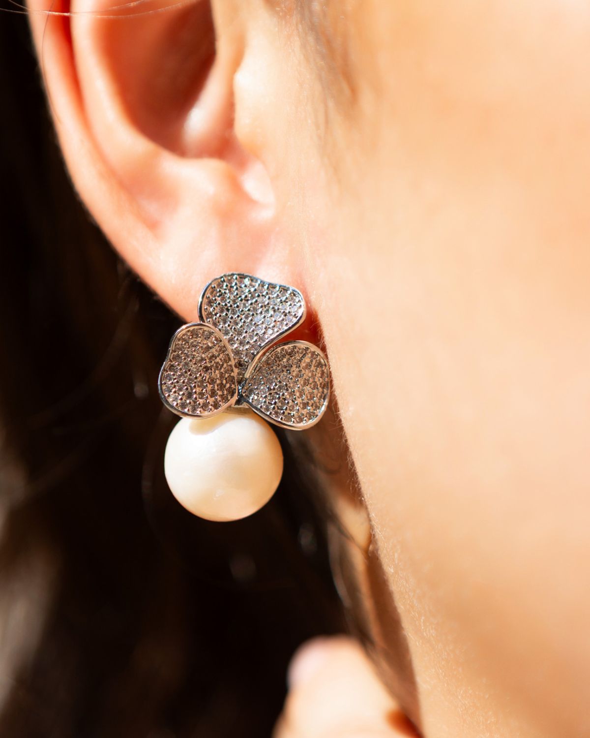 Petal Drop Earrings- Elegant drop earrings featuring petal-shaped, pavé-set tops and luminous freshwater pearls. A timeless design that blends sculptural form with everyday sophistication.