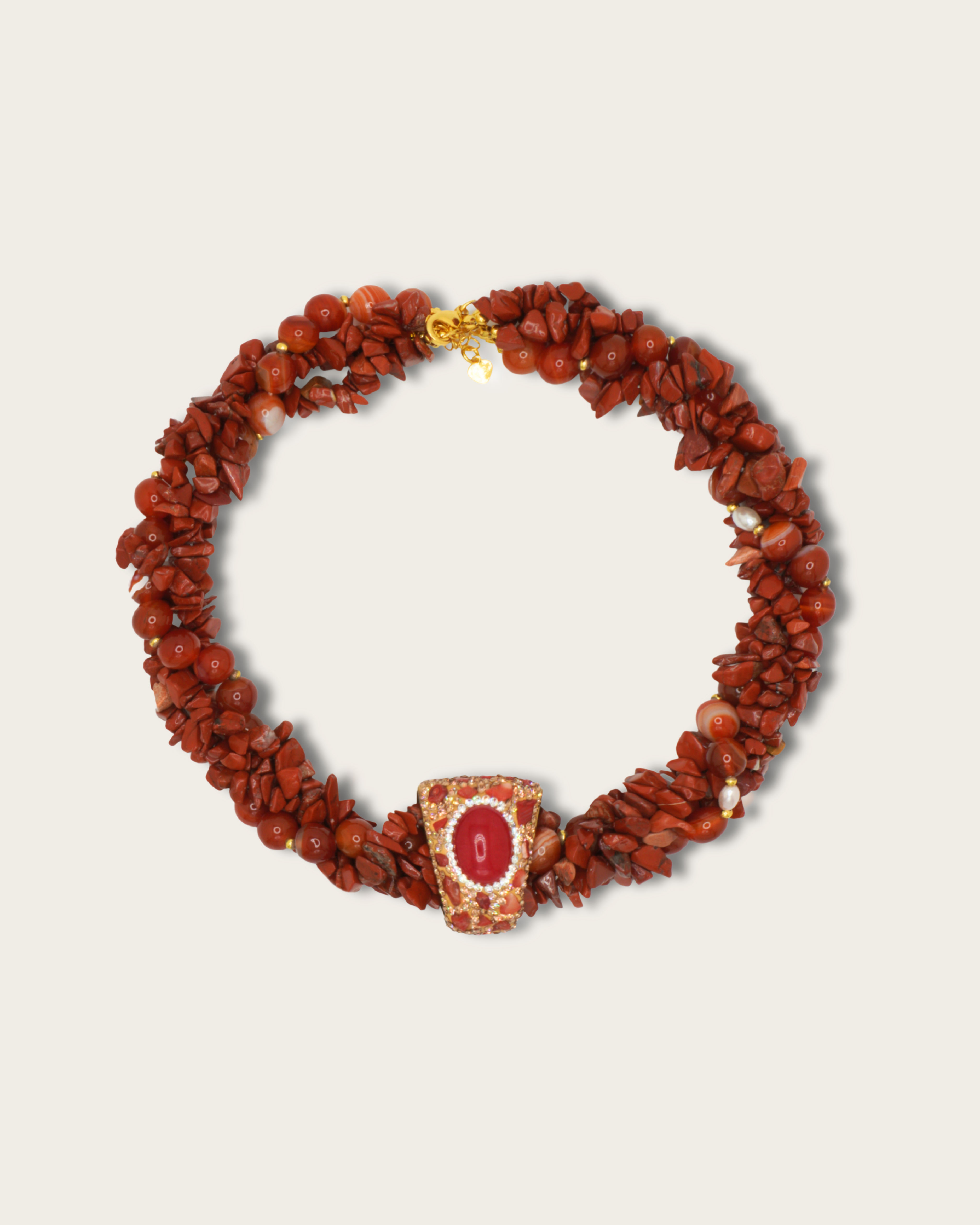 - Beads: Red jasper chips