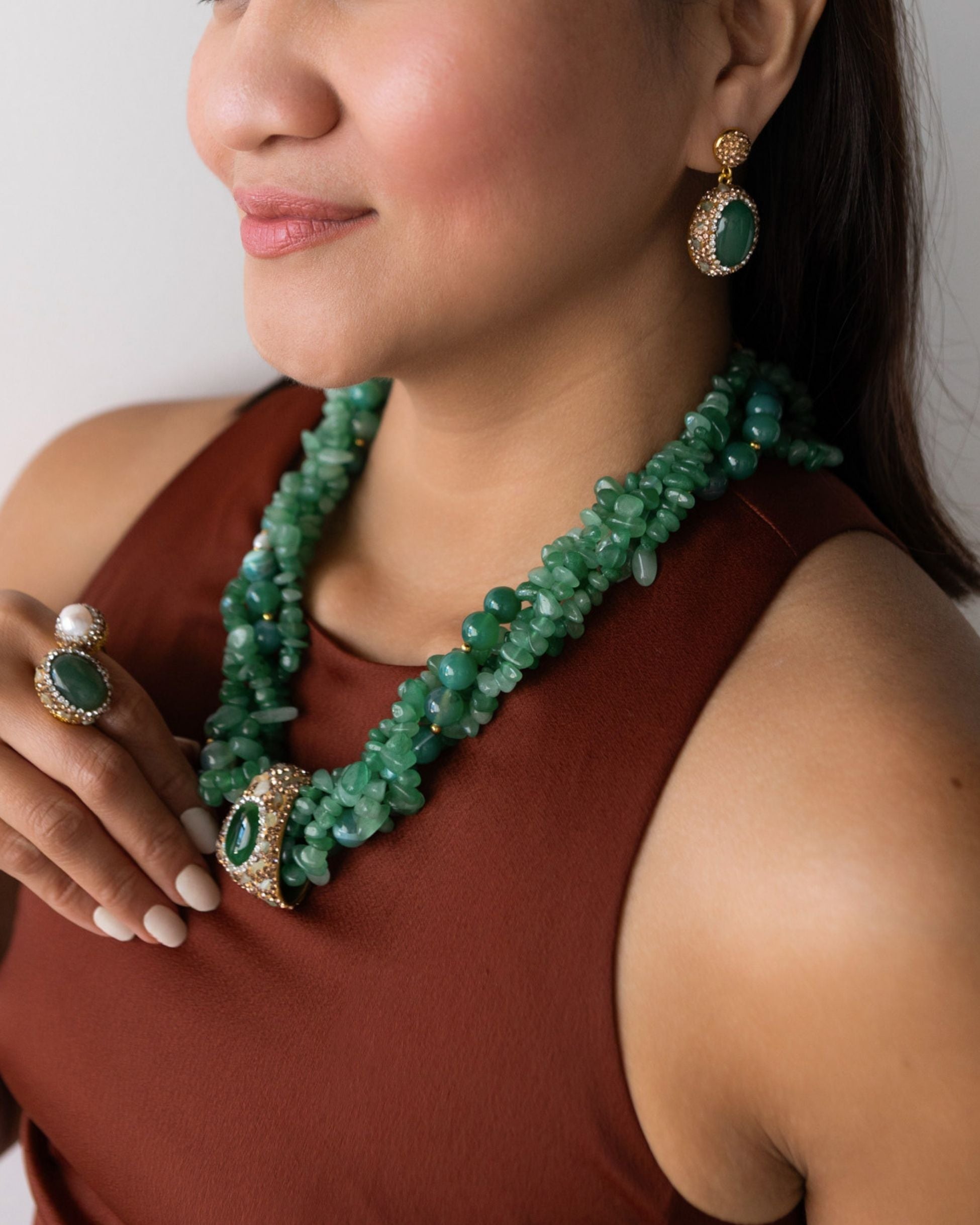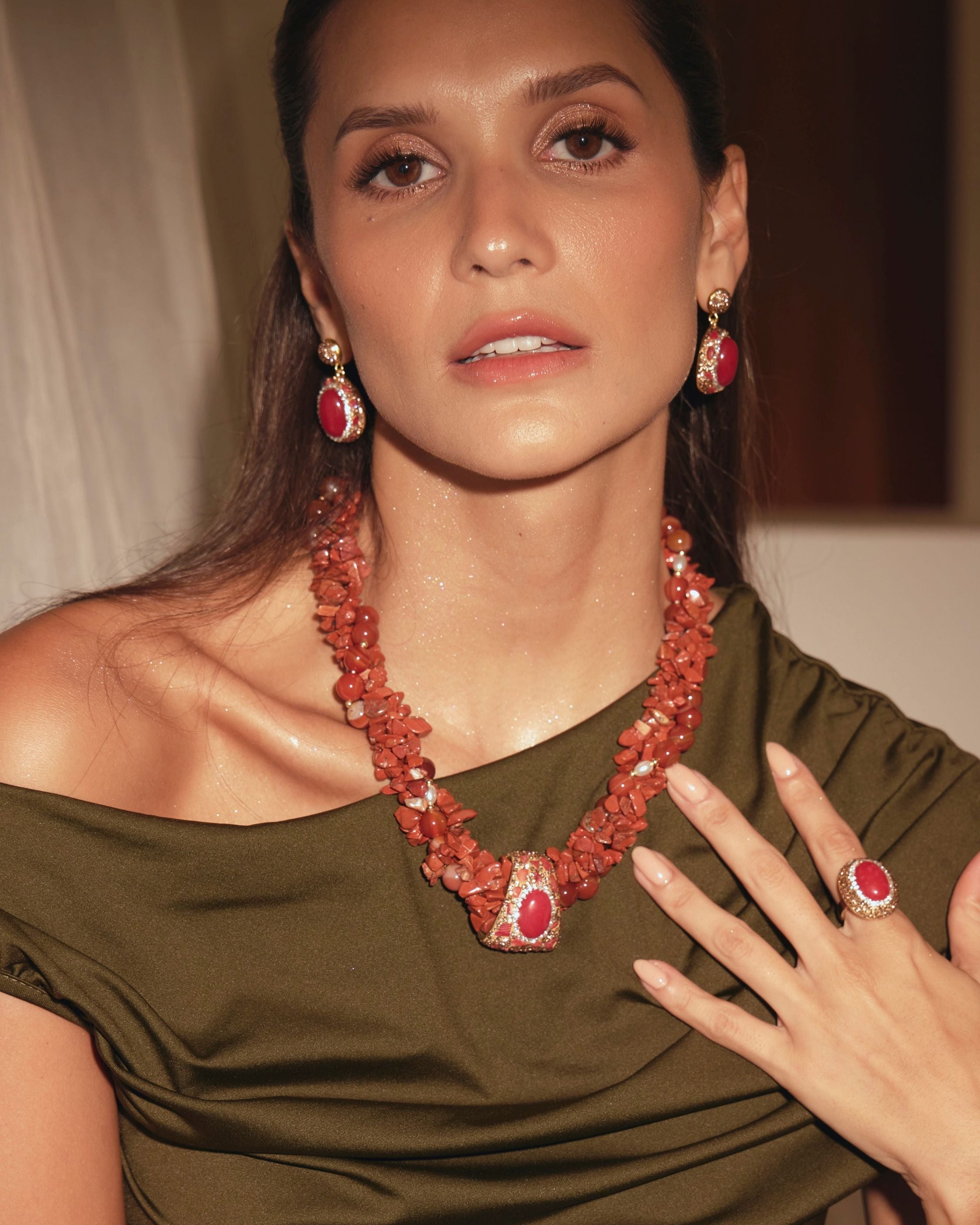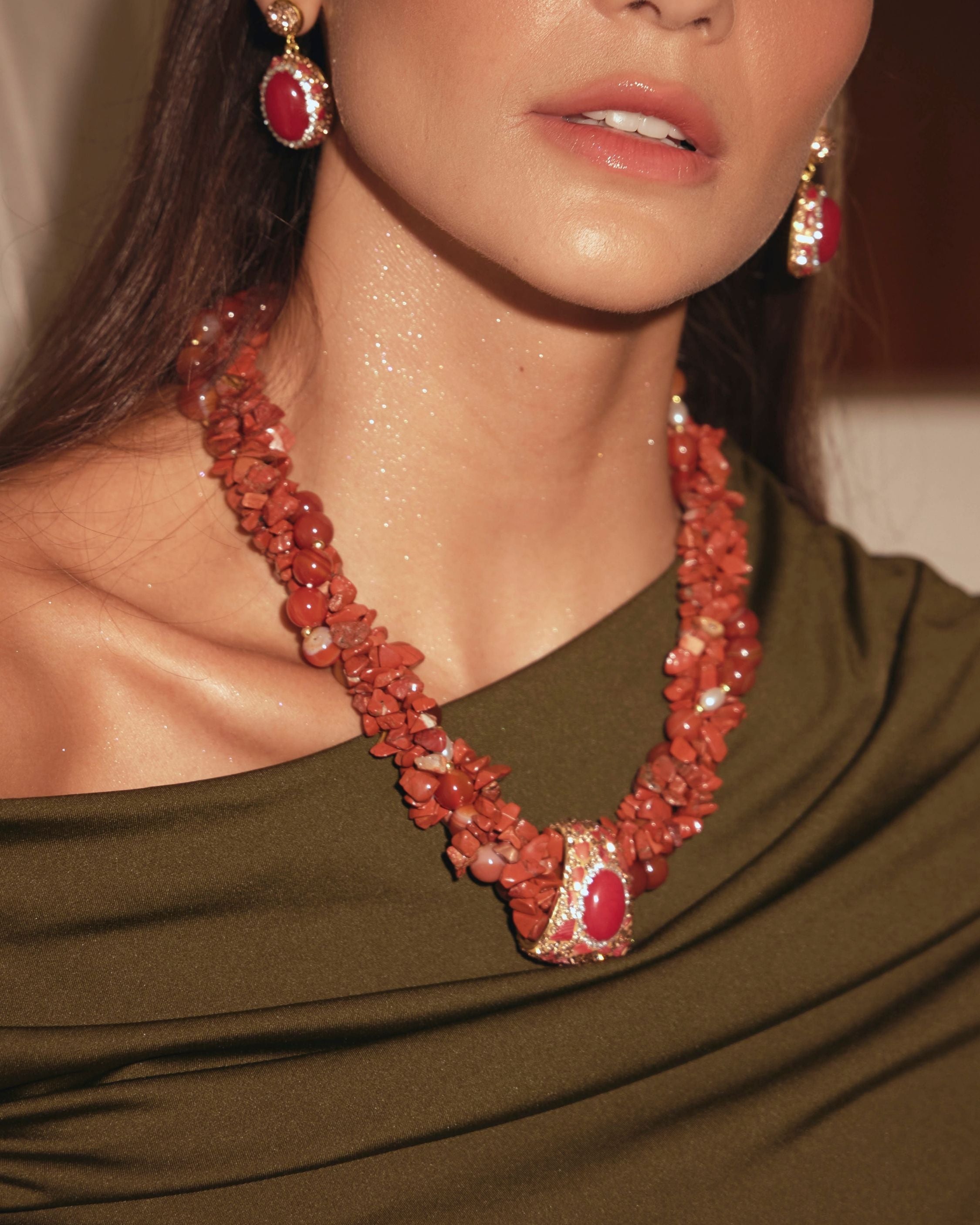 - Beads: Red jasper chips