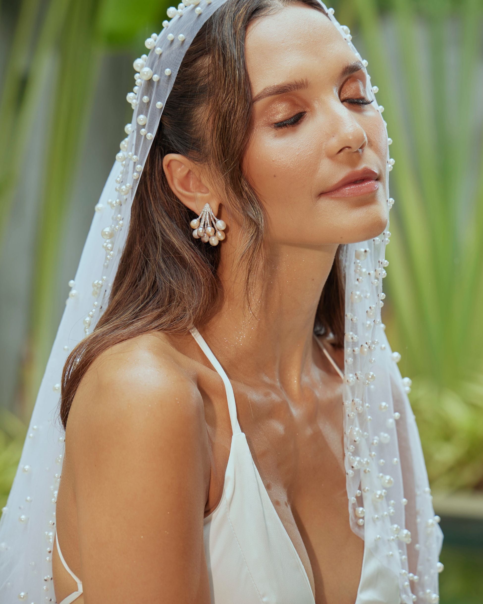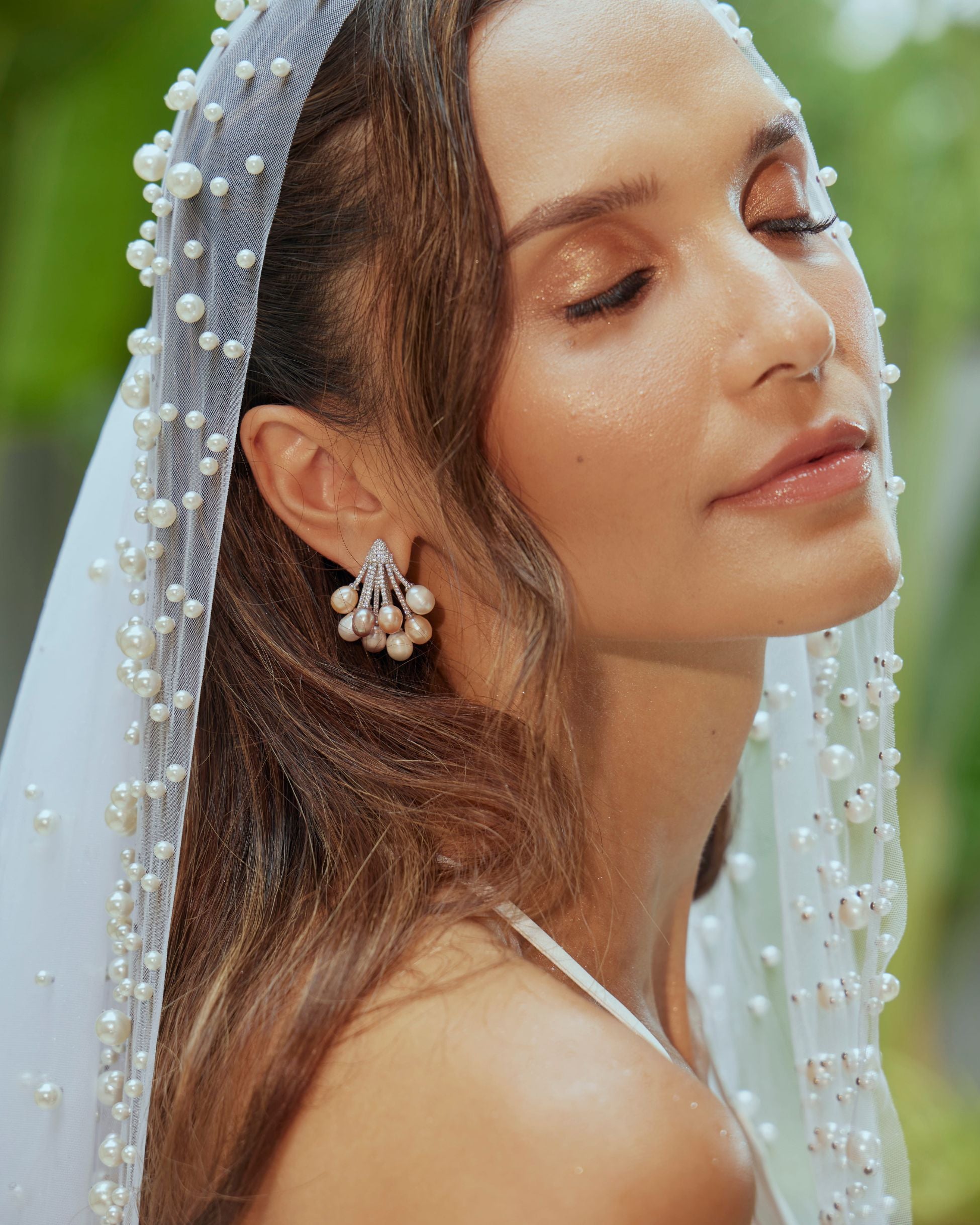 A sculptural cluster of freshwater pearls that cascade with movement, these earrings embody the drama and opulence of the sea. Finished with golden pavé caps, they balance fluid elegance with bold editorial presence — perfect for collectors and statement styling.